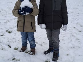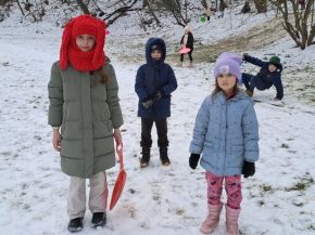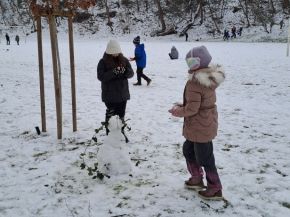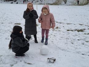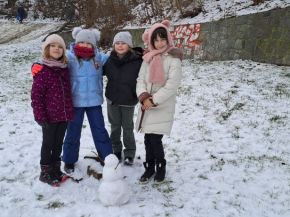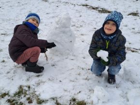 Po návratu z vánočních prázdnin jsme si užili první sněhové nadílky. Sníh nám sice rychle roztál, ale postavit sněhuláky, uspořádat závodění na lopatách i koulovačku jsme stihli.