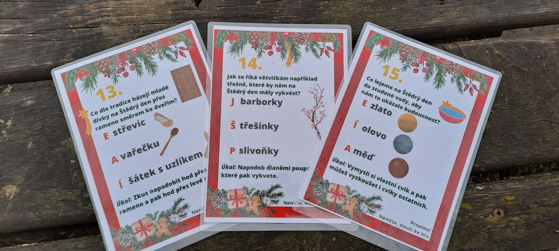 Za správně vyluštěnou tajenku jsme dostali medaili a vánoční omalovánku.