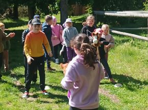 Děti z I. a IV. oddělení školní družiny se 6. května vydaly na Zámecký statek v Újezdě nade Mží na zábavně-naučný program Zvířata na statku, během kterého se blíže seznámily s domácími zvířaty, jejich životem a péčí o ně.