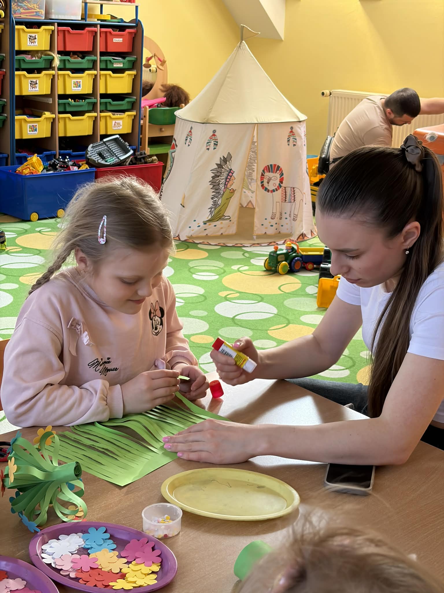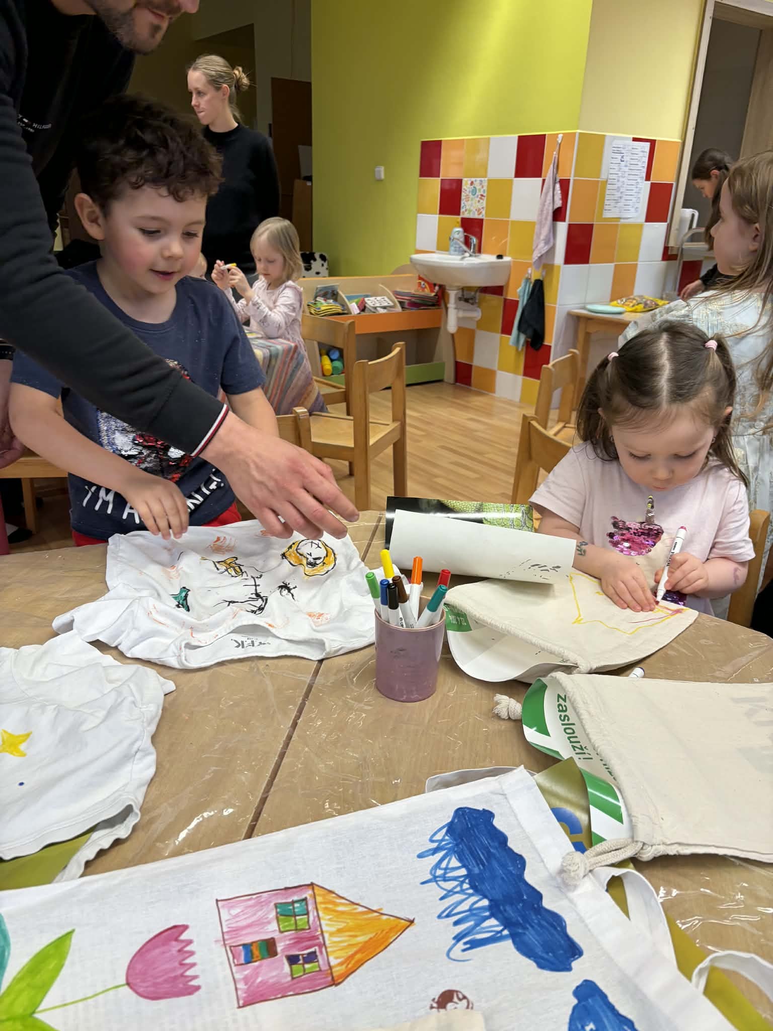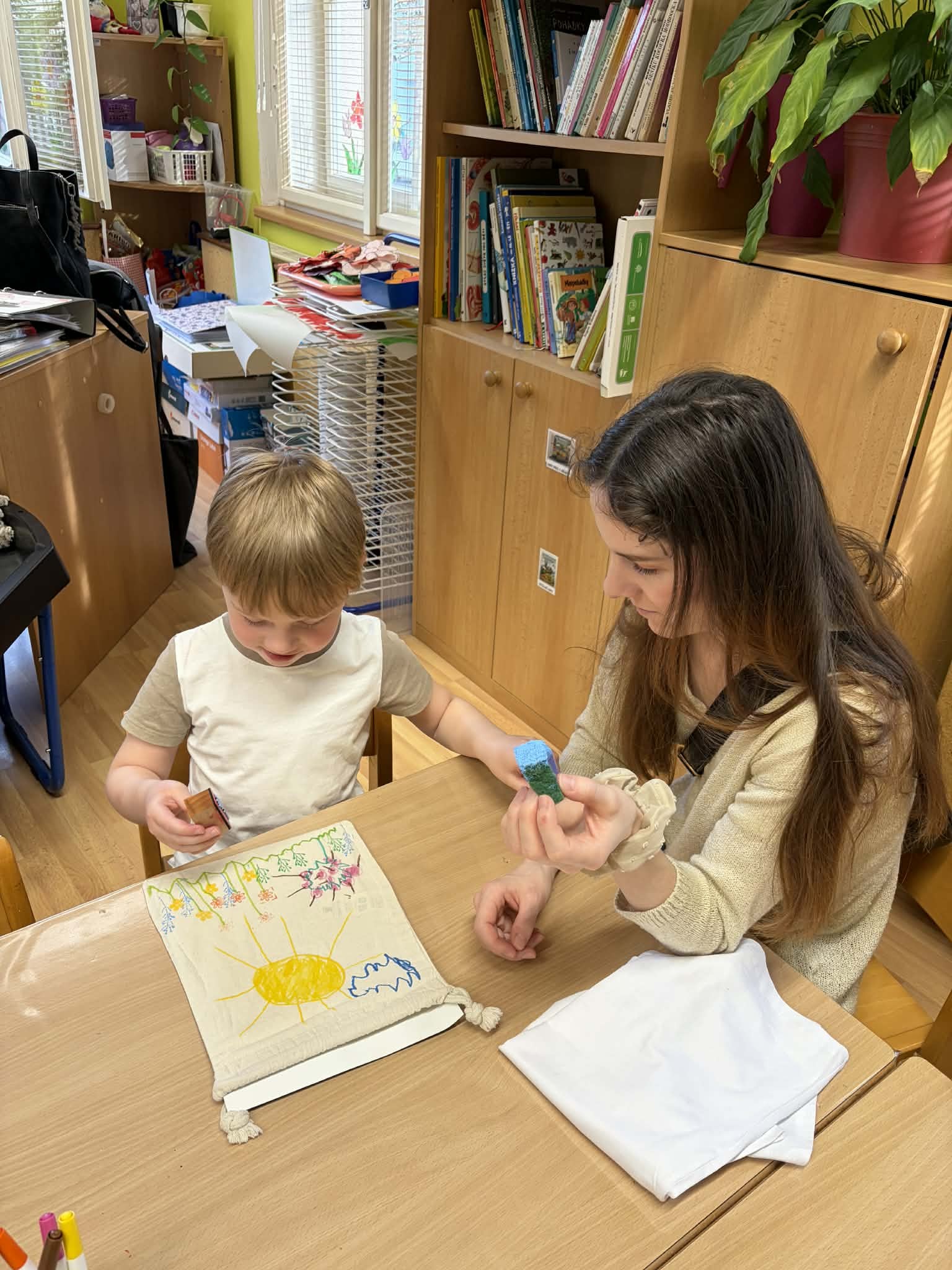 Letošní jarní tvoření pro rodiče s dětmi bylo moc milým setkáním. Děti si s menší či větší pomocí svých blízkých potiskly sáček na drobnosti nebo tričko. A dále si vyrobily kytici z papíru do svých pokojíčků. Všichni byli moc šikovní! A my děkujeme všem, kteří přišli, a přejeme krásné jarní dny.
