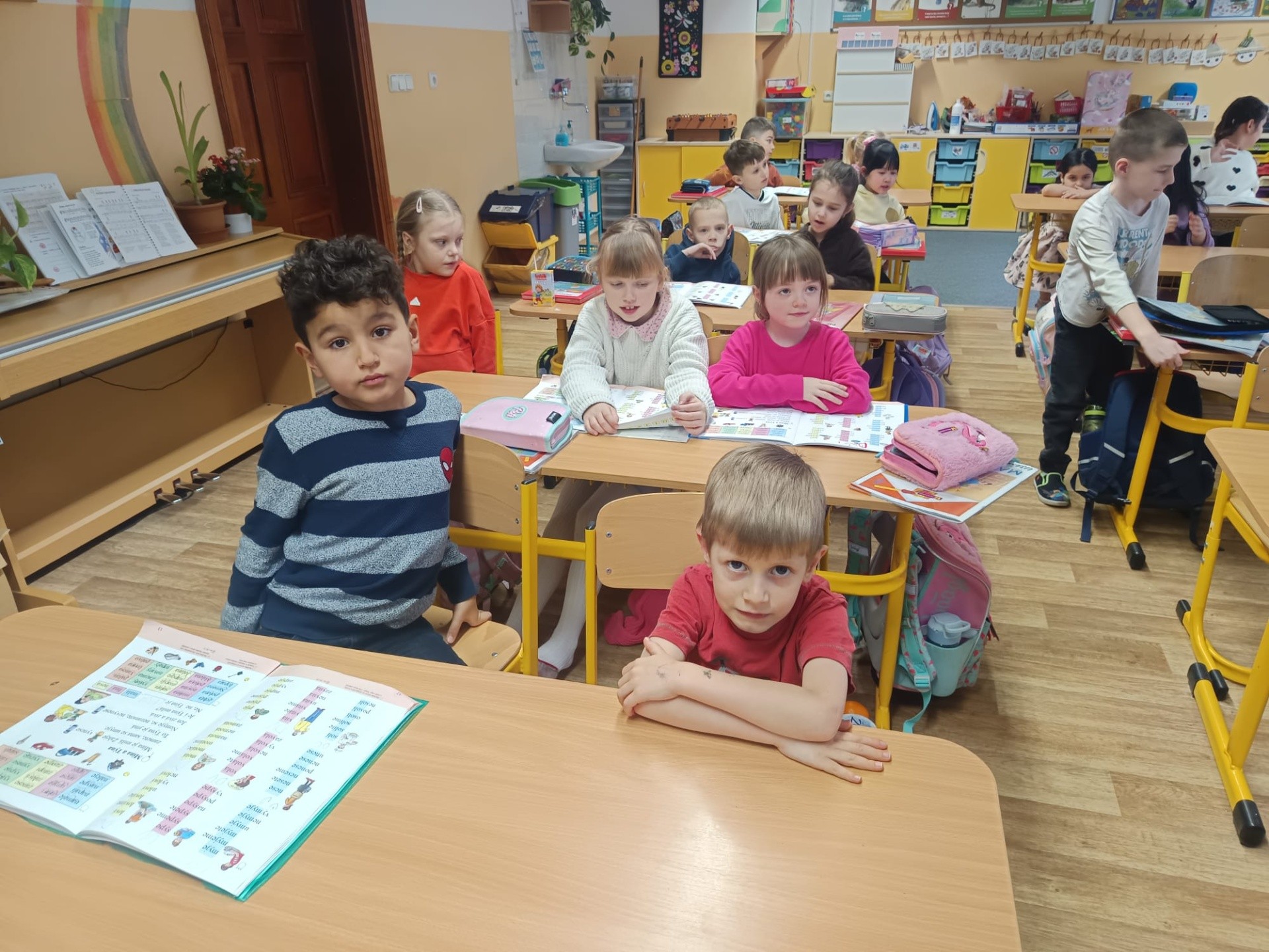 Je to tady, za chvilku z nás budou prvňáčci. A tak jsme se vypravili na návštěvu prvních tříd, ať víme, co nás čeká. Tady nám kamarádi – školáci ukázali, jak krásně už umí číst, psát a počítat. Sedli jsme si do lavic a splnili také pár úkolů. Společně jsme si i zazpívali a dostali malou odměnu. A teď už se do školy všichni moc těšíme!
