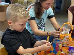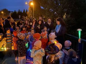 Předposlední říjnové úterý přišli do školky všichni, kteří rádi tvoří a malují. Děti si vyrobily krásné podzimní lucerny a dýně z papíru. Dále si nazdobily svá portfolia, která budou sloužit k uložení fotografií, prací a dalších drobností, které za svůj pobyt v naší školce nasbírají? Když se venku setmělo, vypravili jsme se na průvod s lucernami. A na konci procházky jsme poslali pár lístků po vodě a popřáli přírodě, aby si přes zimu hezky odpočinula.