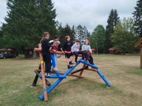 Během tří dnů si šesťáci zahráli spoustu seznamovacích her, zkusili pracovat v různě velkých a různě poskládaných skupinách, kde procvičili schopnost komunikace a spolupráce důležité pro překonání překážek. Postupně o sobě žáci získávali nové informace, řešili společně úkoly a sportovali – v areálu kempu měli na výběr množství sportovních aktivit a tak i volné chvíle trávili na beachvolejbalovém hřišti, streetbasketbalem či fotbálkem. Svoji fyzickou zdatnost otestovali čerství druhostupňáci během 11 kilometrové túry na Krasíkov a zříceninu hradu Švamberk, kde čekala i sladká odměna za správné vyřešení rébusové běhací hry. Večer pak nechyběla ani stezka odvahy a až na pár unavených výjimek, které stihly usnout, se děti s odvahou prošly po tmě lesem.