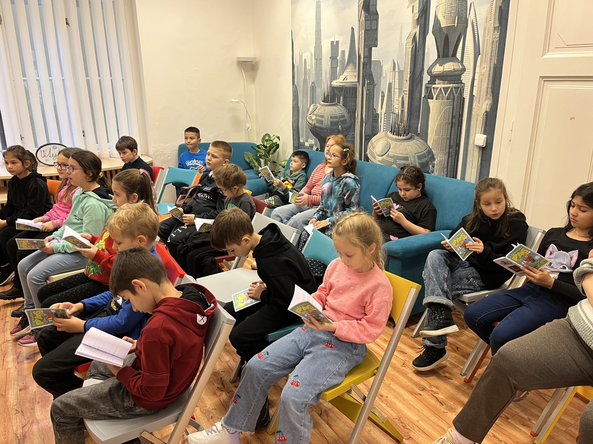 Akce v 2.C - Návštěva knihovny, divadlo Alfa, pyžamový den, bruslení ve Škodaparku, vyrábění v Národopisném muzeu a vánoční trhy