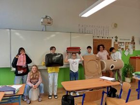 V pátek 10. dubna proběhl na naší škole Den bez aktovek. Žáci mohli v tento den nechat své aktovky doma a přinést si učebnice a školní pomůcky v zavazadle dle vlastní fantazie. Platilo, že čím šílenější nápad, tím lepší. K vidění tak bylo například škrábadlo pro kočky, taburet, košíky, krabice od bot či vlastnoručně vyrobená pračka z papíru. Děkujeme za všechny kreativní nápady!