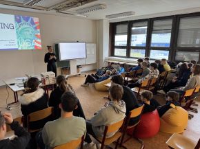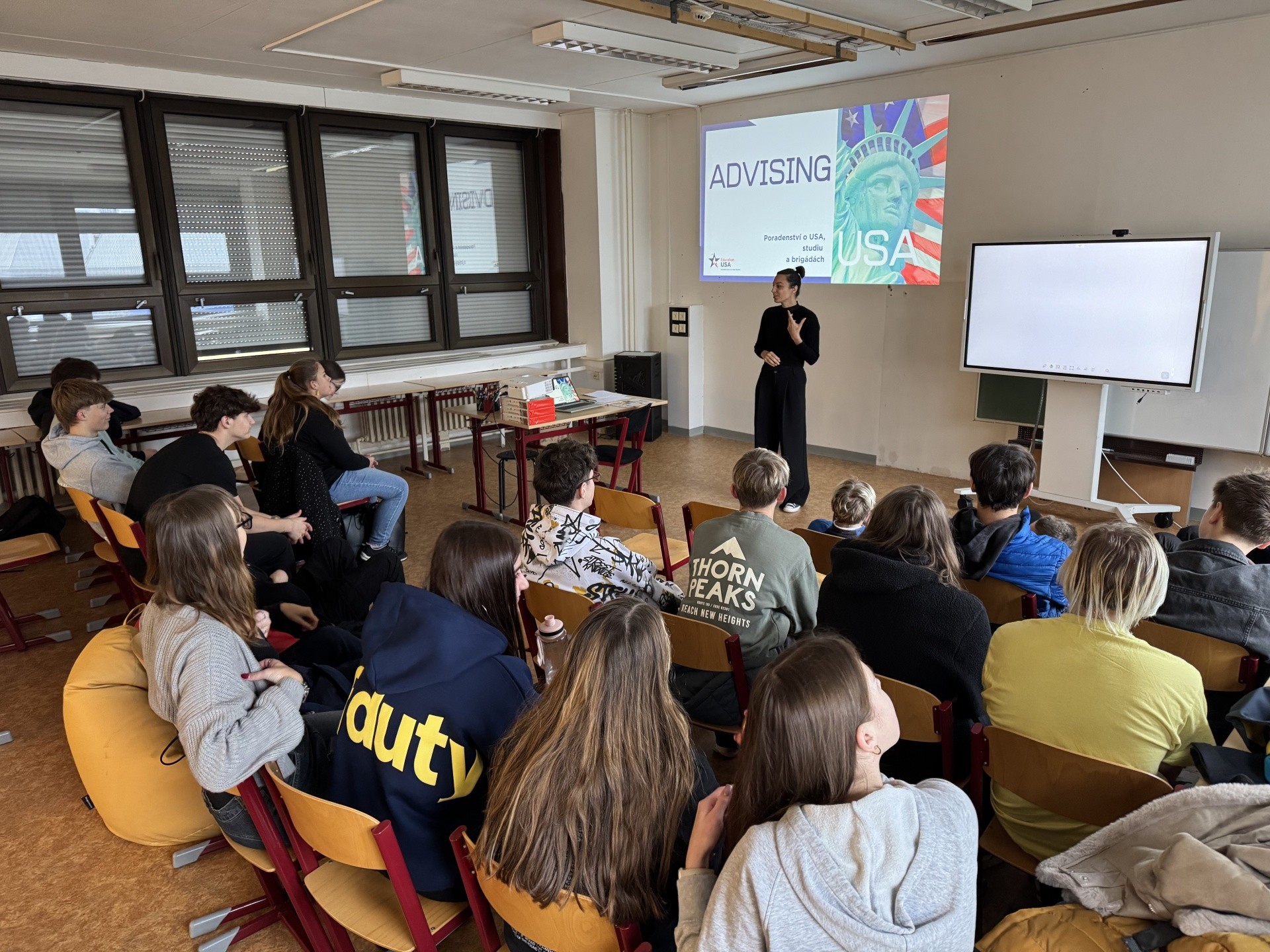 Počátkem prosince navštívili naši deváťáci již tradičně US Point při ZČU. Žáci měli možnost seznámit se s Americkým centrem a jeho aktivitami. Dále pak absolvovali přednášku o možnostech studia, letních brigád či jazykových kempů v USA. Navíc jim byly představeny nejrůznější stipendijní programy, které mohou jejich případná budoucí studia usnadnit po finanční stránce.