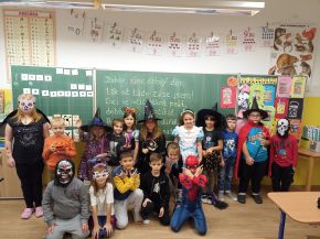 Dne 31. 10. 2024 proběhl ve třídě 1. A, 1. B, 1. C projektový den na téma Halloween. Děti i učitelé přišly v maskách a celé dopoledne plnily halloweenské úkoly v prostorách školy. Na závěr děti čekala sladká odměna.