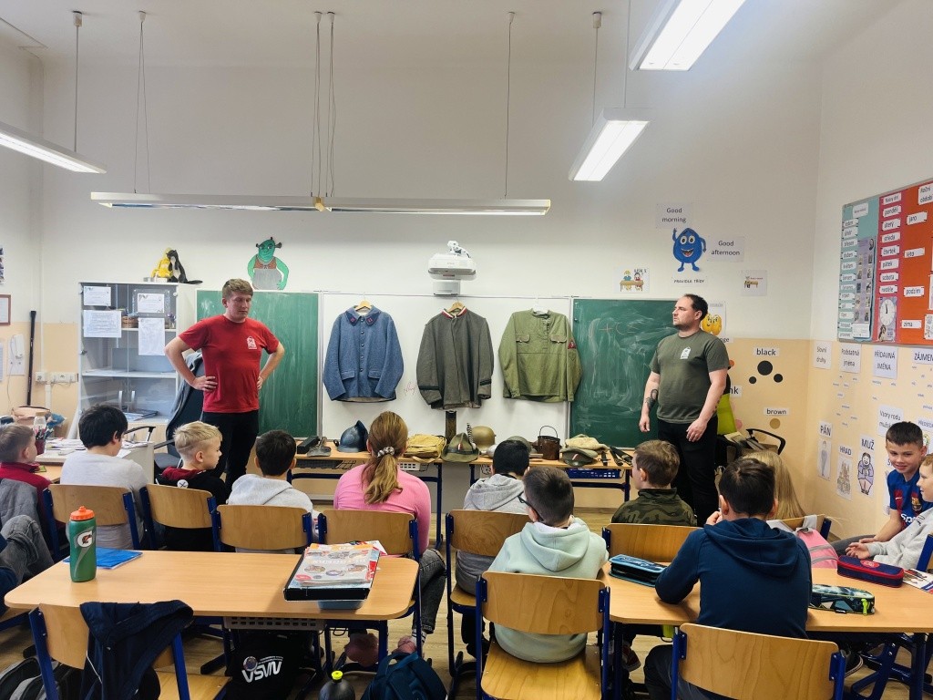 V pondělí 4.listopadu se na naší škole ve třídách 5.A a 5.B uskutečnila přednáška s členy Československé obce legionářské na téma První světová válka. Součástí přednášky byla i ukázka dobových artefaktů, která studentům pomohla lépe pochopit válečnou realitu. Celkově se jednalo o vzdělávací a interaktivní zážitek, který studenty zaujal. Děti kladly otázky, a tak se nadšeně zapojily do práce lektorů.