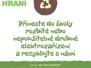 Ve dnech 21. 10. - 23. 10. 2024 bude na naší škole probíhat sběr drobného elektra v rámci projektu Recyklohraní. Přinést můžete nefunkční elektrické hračky, mobilní telefony, notebooky, rádia, fény, svítilny, holící strojky, žehličky, varné konvice, mixéry, reproduktory, ovladače a další drobná elektrozařízení. Pro sběr bude připraveno sběrné místo na vrátnici školy. Děkujeme, že s námi recyklujete.