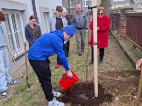 Náš žákovský parlament ve čtvrtek 26. března slavnostně zasadil strom žákovského parlamentu. Strom nám darovalo město Plzeň, které tímto způsobem podpořilo všechny žákovské parlamenty ve městě. Jedná se o třešeň, která nám bude dělat radost v době květu i sklizně ovoce. Strom jsme zasadili za přítomnosti vedení školy a společně si připili na jeho zdraví. Přejeme mu pevné kořeny, dostatek slunce a času k růstu. Už se těšíme, až z jeho plodů společně upečeme bublaninu!
