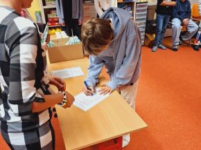 Začátkem října proběhla na naší škole úvodní slavnostní schůzka žákovského parlamentu prvního i druhého stupně. Žáky nejprve přivítala paní učitelka Horová, která je koordinátorka žákovského parlamentu a dohlíží na jeho fungování. Slavnostního setkání se zúčastnila i paní ředitelka, která zdůraznila přínos parlamentu pro školu a potvrdila, že se vedení školy všemi návrhy žáků aktivně zabývá.