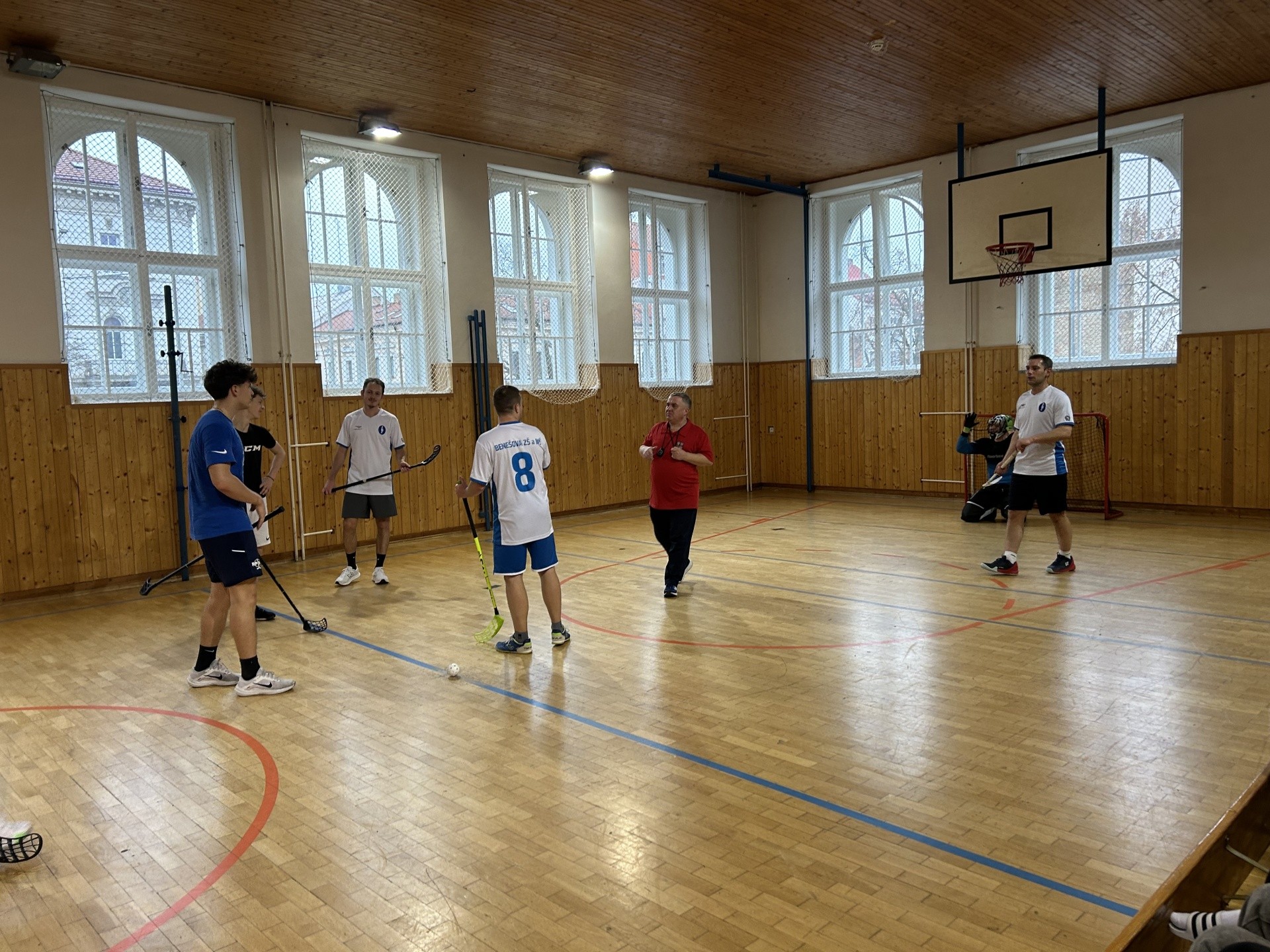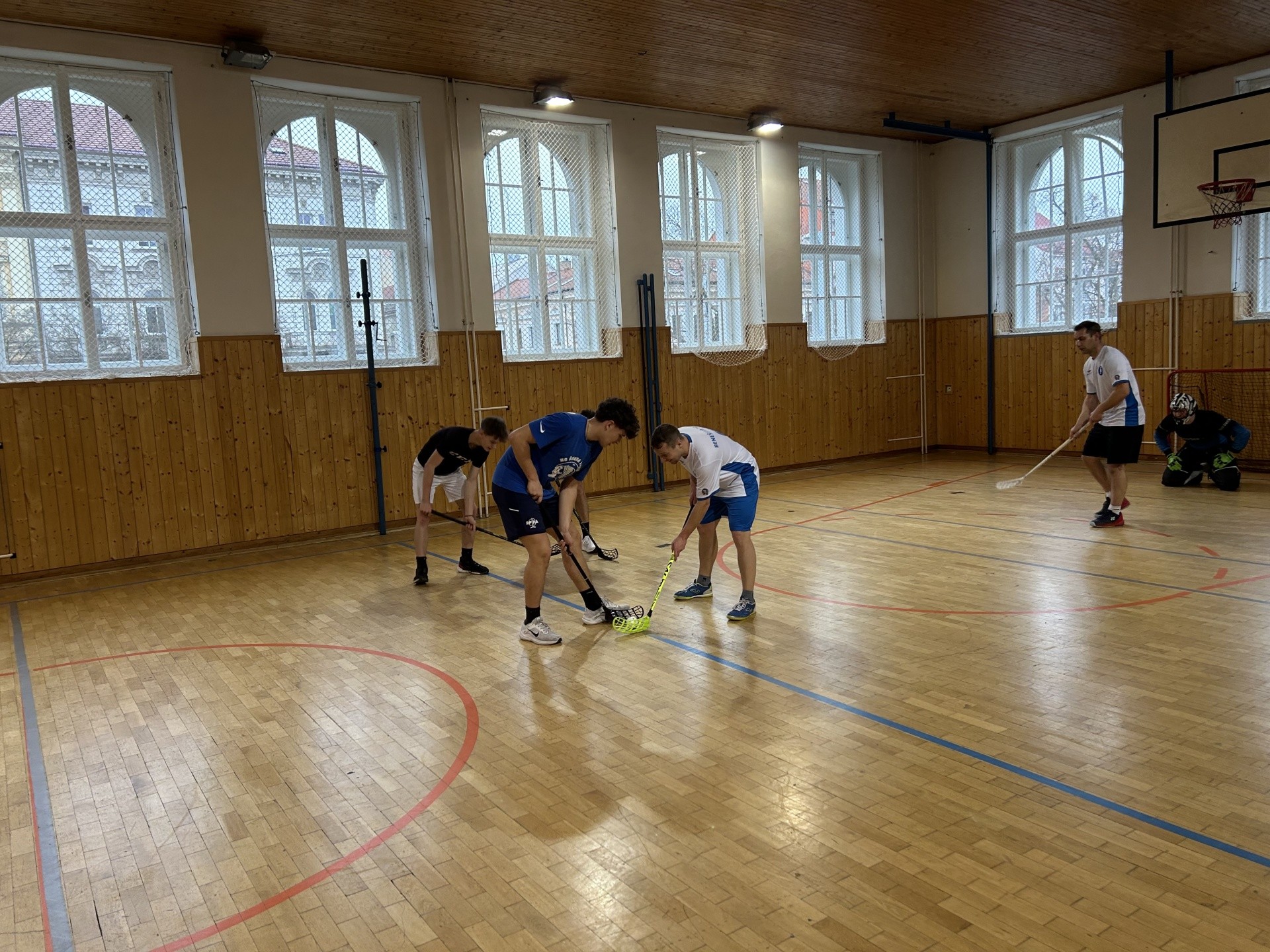 Na závěr dne vyzval jako každoročně výběr učitelského sboru vítězný tým starší kategorie ve florbalu. Po letním zaváhání ve fotbalu (prohra na penalty 2:1) učitelé nenechali nic náhodě a zvítězili proti 9.B1 9:1.